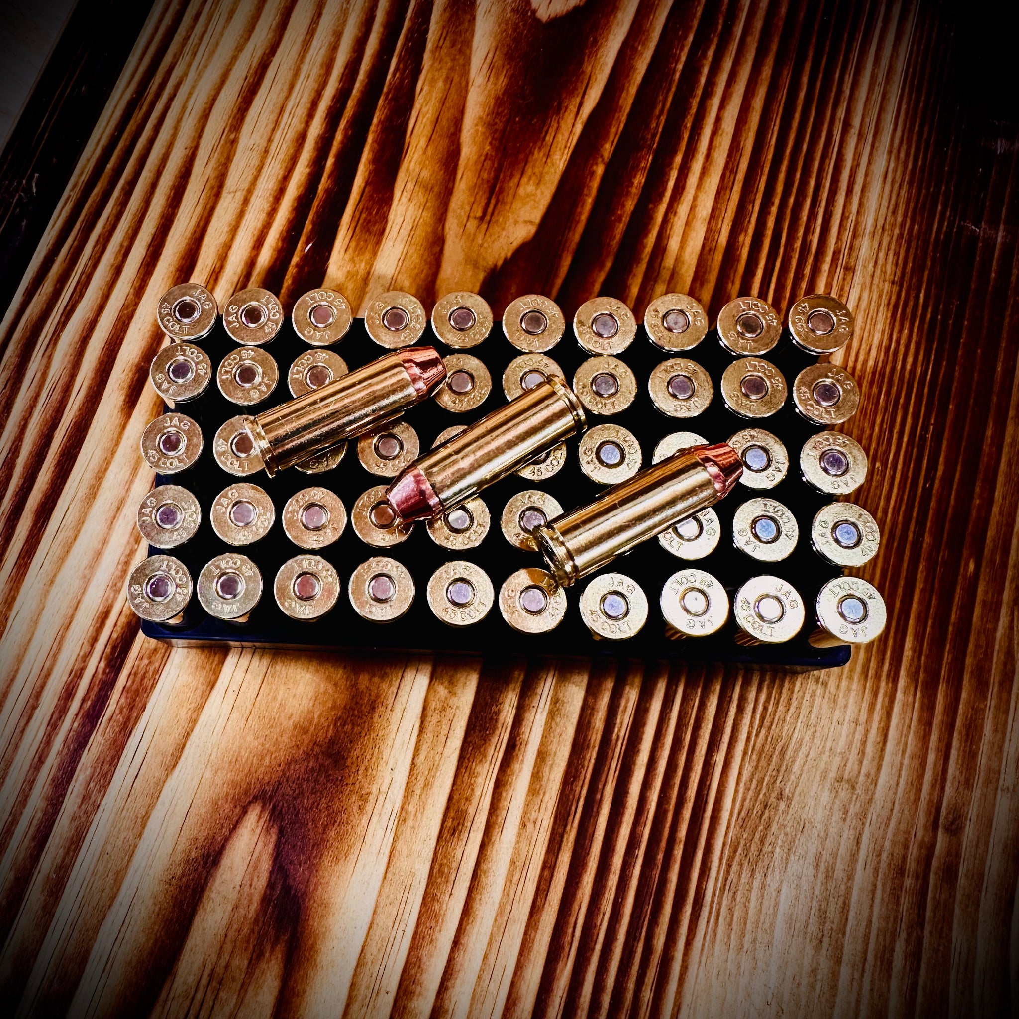 We start with Berry's Bullets complete metal jacket flat point projectiles, over a proven powder charge, perfectly crimped into Jagemann Brass. This round is designed to be an accuracy load in carbines, and comfortable to shoot in a handgun.